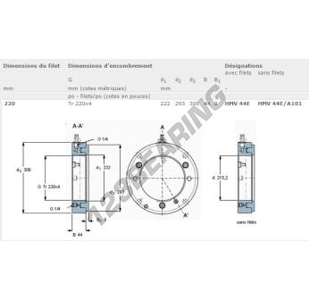 This lock nut HMV44E-SKF with an inside diameter of 222mm, an outside diameter of 306mm and a thickness of 44mm.