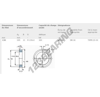 This lock nut KM26-SKF with an inside diameter of 130mm, an outside diameter of 165mm and a thickness of 21mm.