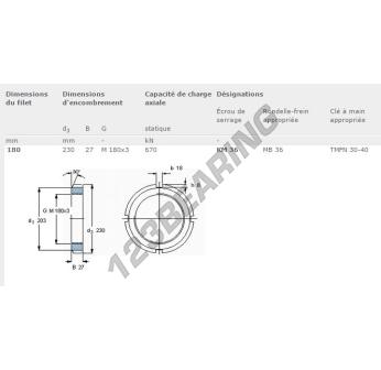 This lock nut KM36-SKF with an inside diameter of 180mm, an outside diameter of 230mm and a thickness of 27mm.
