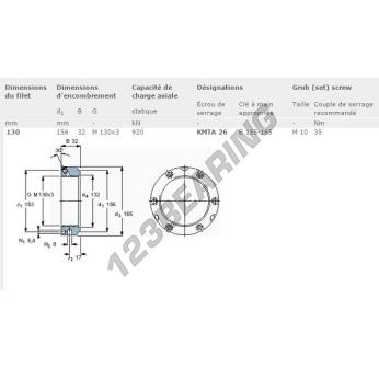 This lock nut KMTA26-SKF with an inside diameter of 130mm, an outside diameter of 156mm and a thickness of 32mm.
