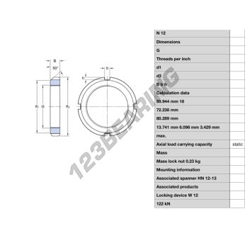 This lock nut N12-SKF with an inside diameter of 59.944mm, an outside diameter of 80.289mm and a thickness of 13.741mm.
