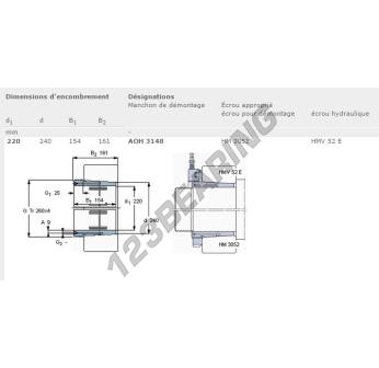 The Adapter Sleeve, known as AOH3148-SKF SKF, has an inner diameter of 220 mm, an outer diameter of 240 mm and a thickness of 154 mm.