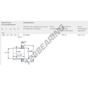 The Adapter Sleeve, known as H3140-SKF SKF, has an inner diameter of 180 mm, an outer diameter of 250 mm and a thickness of 150 mm.