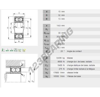 The Deep Groove Ball Bearing, known as 3002-ZZ-INA INA, has an inner diameter of 15 mm, an outer diameter of 32 mm and a thickness of 13 mm.