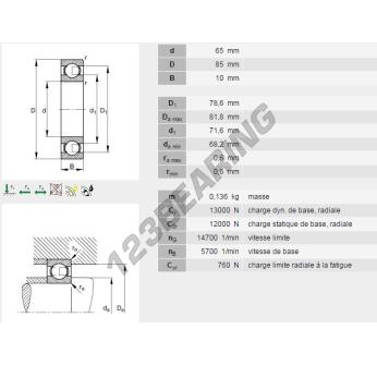 The Deep Groove Ball Bearing, known as 61813-Y-INA from the brand INA, has an inner diameter of 65 mm, an outer diameter of 85 mm and a thickness of 10 mm.