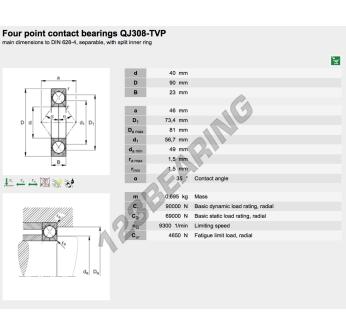 The Deep Groove Ball Bearing, known as QJ308-XL-TVP-FAG FAG, has an inner diameter of 40 mm, an outer diameter of 90 mm and a thickness of 23 mm.
