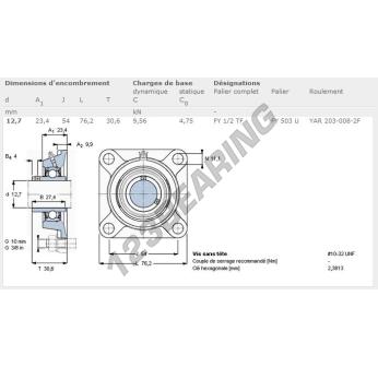 The Housed Bearing - 4 Bolts known as FY1-2-TF-SKF SKF has a shaft diameter of 12.7 mm and a fixing spacing of 54 mm. This part number is produced in cast iron and the tightening type is .