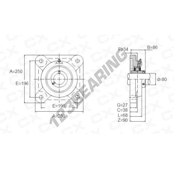 The Housed Bearing - 4 Bolts known as UCF316 Generic has a shaft diameter of 80 mm and a fixing spacing of 196 mm. This part number is produced in cast iron and the tightening type is .