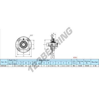 The Housed Bearing - 4 Bolts known as UCFC205-INOX Generic has a shaft diameter of 25 mm and a fixing spacing of 63.6 mm. This part number is produced in STAINLESS STEEL and the tightening type is .