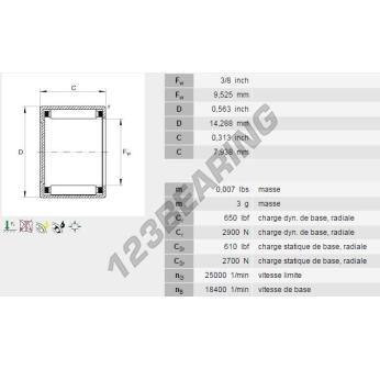 The Drawn Cup Needle Roller Bearing, known as BCE65-INA INA, has an inner diameter of 9.53 mm, an outer diameter of 14.29 mm and a thickness of 7.92 mm.
