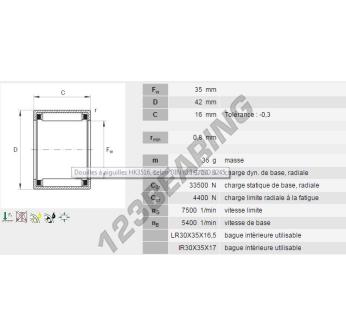 The Drawn Cup Needle Roller Bearing, known as HK3516-B-INA INA, has an inner diameter of 35 mm, an outer diameter of 42 mm and a thickness of 16 mm.