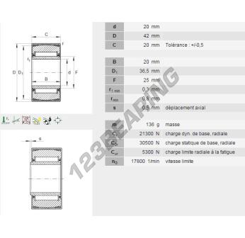 The Needle Roller Bearing, known as PNA20-42-INA INA, has an inner diameter of 20 mm, an outer diameter of 42 mm and a thickness of 20 mm.