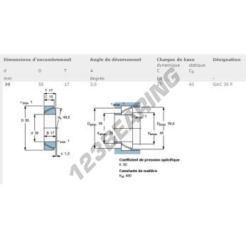 The Rod End Gac known as GAC30F-SKF has an inside diameter of 30 mm and an outside diameter of 55 mm.