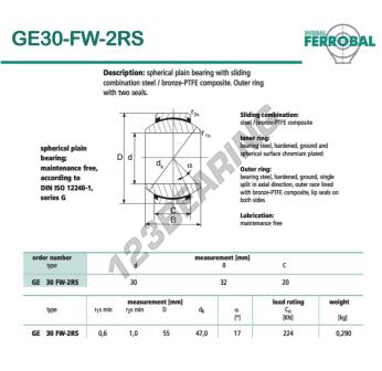 Part number : GE30-FW-2RS-DURBAL