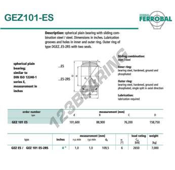 The Rod End Geew known as GEZ101-ES-DURBAL DURBAL has an inside diameter of 101.6 mm, an outside diameter of 158.75 mm and a thickness of 76.2 mm.