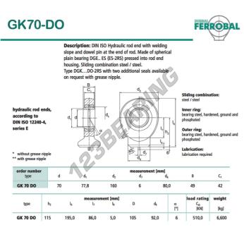 The Rod End Tpn known as DGK70-DO-DURBAL DURBAL has an inner diameter of 70 mm, an outer diameter of 160 mm and a thickness of 49 mm.