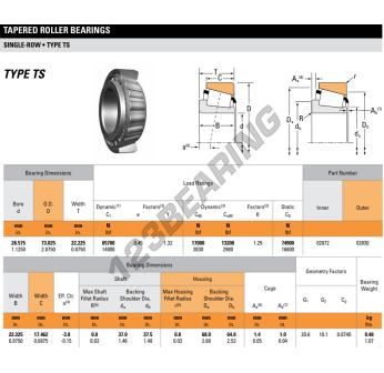 The Tapered Roller Bearing, known as 02872-02830-TIMKEN TIMKEN, has an inner diameter of 28.58 mm, an outer diameter of 72.63 mm and a thickness of 30.16 mm.