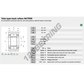 The Yoke Type Track Roller, known as NUTR50-A-INA INA, has an inner diameter of 50 mm, an outer diameter of 90 mm and a thickness of 32 mm.